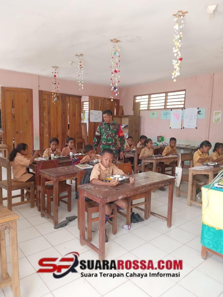 Flotim — Dalam rangka mendukung program pemerintah dalam peningkatan gizi anak sekolah, Babinsa Koramil 1624-05/Solor, Kopda Kadek Putra, melaksanakan kegiatan monitoring dan pendampingan penyaluran Makanan Bergizi Gratis (MBG) di wilayah Kecamatan Solor Selatan, Kabupaten Flores Timur, Jumat (07/11/2025).