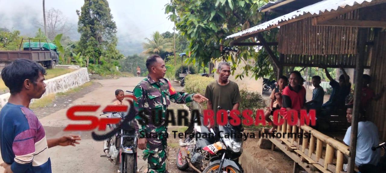 Ende, – Babinsa Koramil 1602-01/Ende, Sertu Bastian Dala, melaksanakan kegiatan Komunikasi Sosial (Komsos) dan Pengamanan Wilayah (Pamwil) di Desa Roga, Kecamatan Ndona Timur, Kamis pagi. Kegiatan ini bertujuan untuk menjaga keamanan, mempererat hubungan TNI dengan masyarakat, serta mendukung aktivitas sosial di wilayah binaan.
