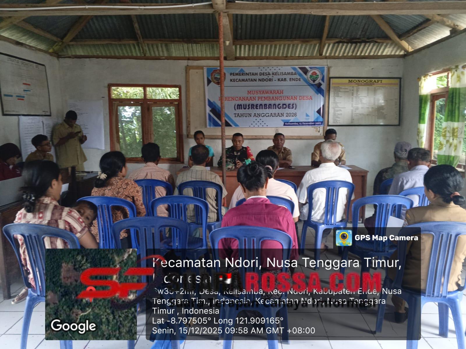 Ende – Babinsa Koramil 1602-02/Wolowaru menghadiri Rapat Musyawarah Perencanaan Pembangunan Desa (Musrenbangdes) Desa Kelisamba, Kecamatan Ndori, Kabupaten Ende, pada Senin (15/12/2025).