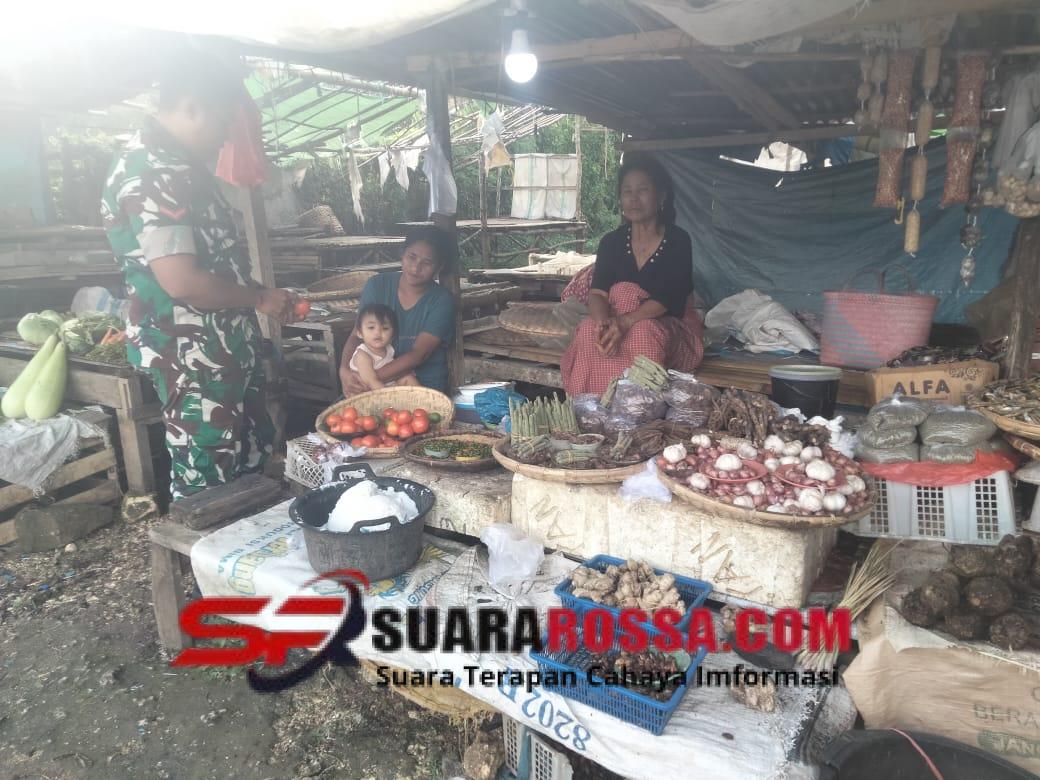 SUMBA TENGAH – Babinsa Koramil 03/Katikutana Kodim 1613/Sumba Barat, Kopda Aminullah melaksanakan kegiatan Komunikasi Sosial (Komsos) dengan warga di Pasar Desa Anakalang, Kecamatan Katikutana, Kabupaten Sumba Tengah, Rabu (29/10/2025).