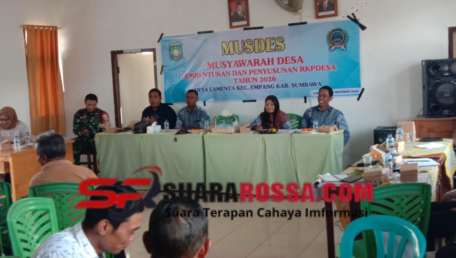 Musdes ini dihadiri oleh Kepala Desa Lamenta beserta perangkatnya, Ketua BPD dan anggota, tokoh masyarakat, tokoh agama, tokoh pemuda, serta perwakilan dari berbagai lembaga desa. Dalam rapat tersebut, peserta membahas berbagai usulan program pembangunan dan pemberdayaan masyarakat yang akan menjadi prioritas pelaksanaan pada tahun 2026.