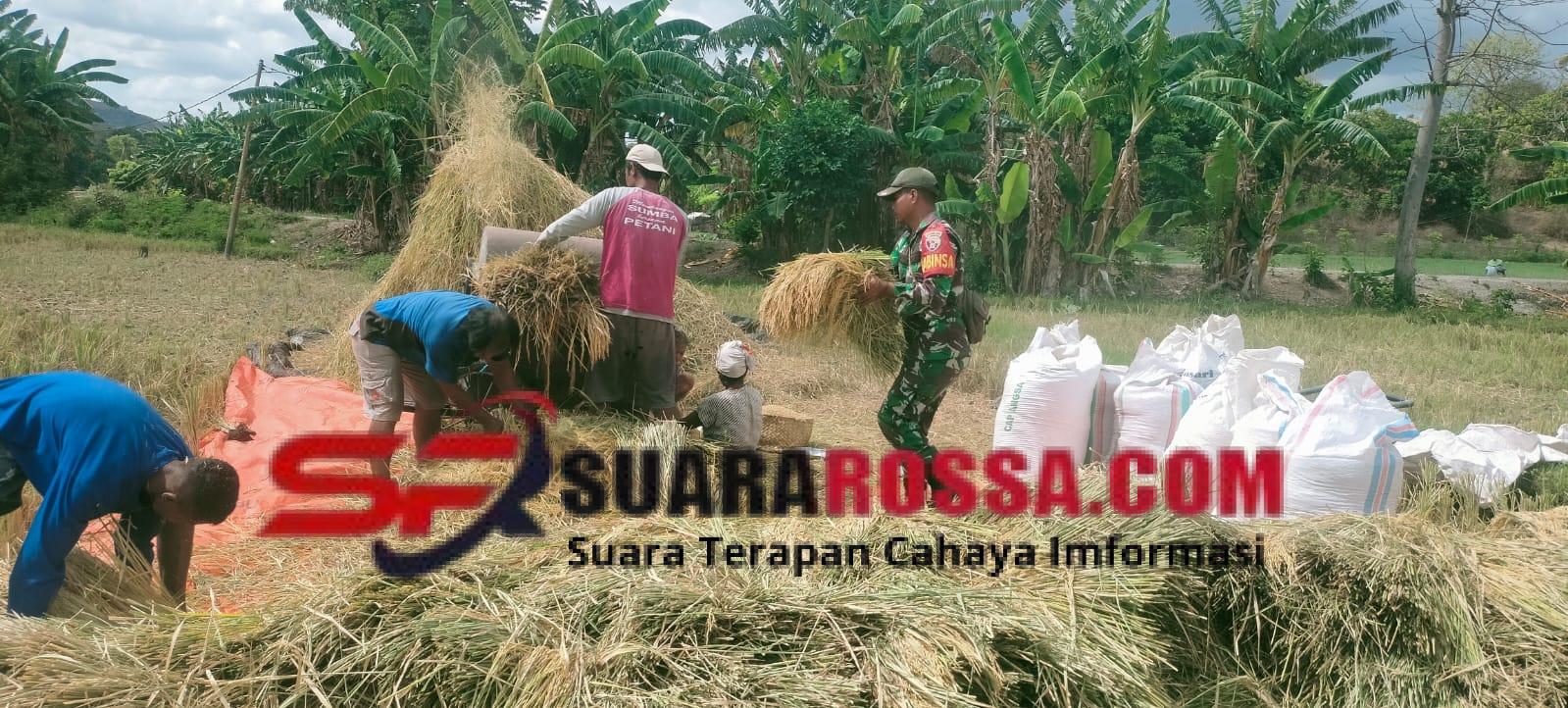 NTT-Sumba TimurBabinsa Koramil 05/Waingapu, Kodim 1601/Sumba Timur, Sertu Darusman melaksanakan pendampingan kepada para petani di Kelurahan Wangga, Kecamatan Kambera, Kabupaten Sumba Timur, saat proses perontokan padi pada Jumat (31/10/2025).