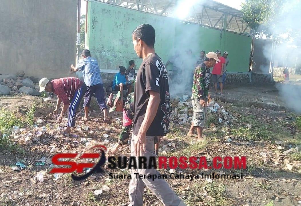 • Gotong Royong Babinsa dan Perangkat Desa Karombo Wujudkan Lingkungan Bersih