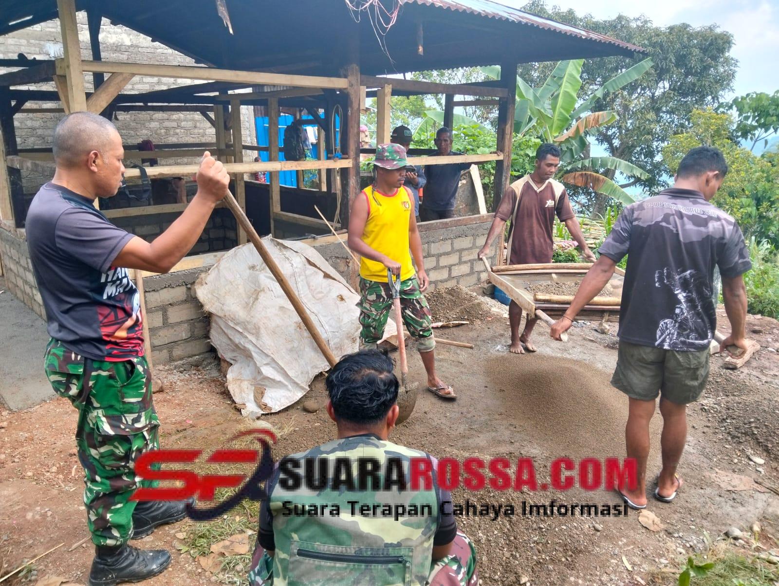 Sejak pagi, suara palu dan gergaji bersahutan di halaman rumah Heribertus. Tampak prajurit TNI bersama warga desa bekerja tanpa mengenal lelah, mengaduk semen, memotong kayu, dan menata batu bata. Kegiatan ini menjadi bukti nyata sinergi antara TNI dan masyarakat dalam mewujudkan lingkungan hunian yang layak bagi warga kurang mampu.