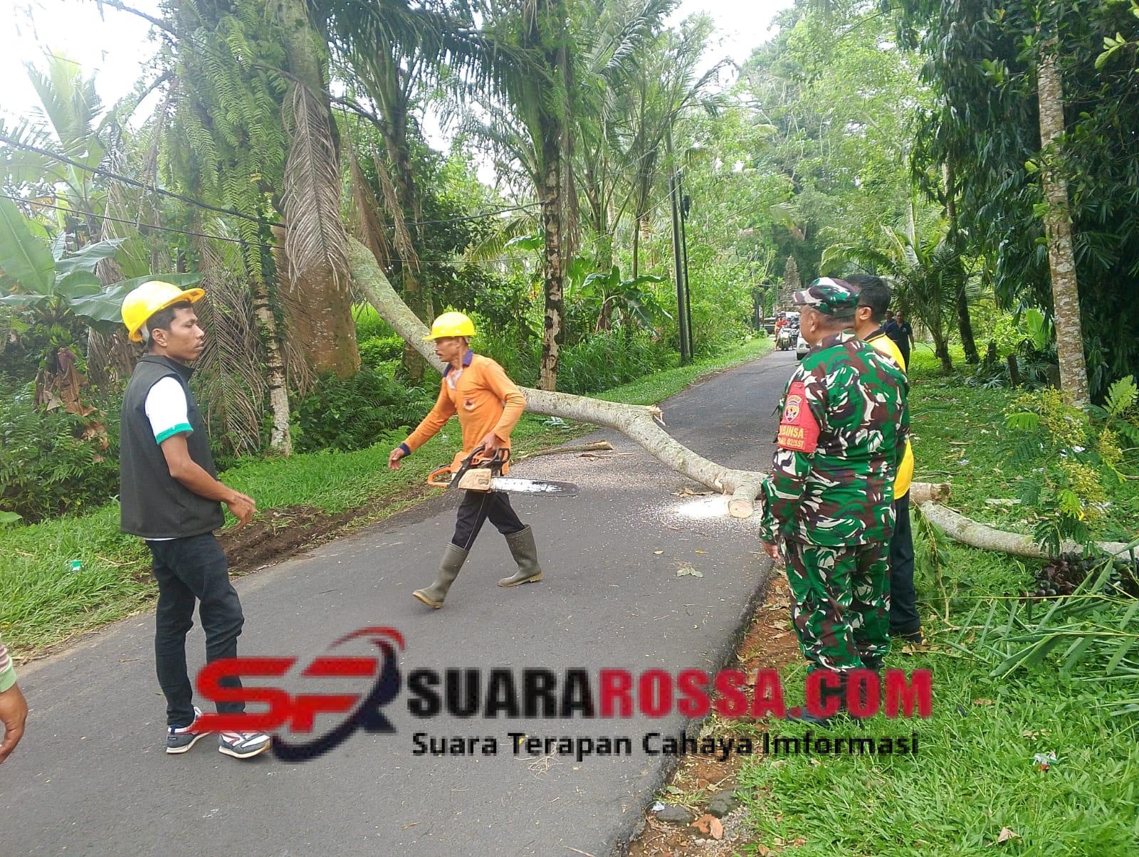 Kegiatan ini dilakukan secara sigap demi menjaga kelancaran arus lalu lintas dan keselamatan pengguna jalan. Berkat kerja sama antara Babinsa, Bhabinkamtibmas, serta masyarakat sekitar, pohon yang tumbang berhasil dipotong dan jalur dapat kembali dilalui kendaraan dengan aman.