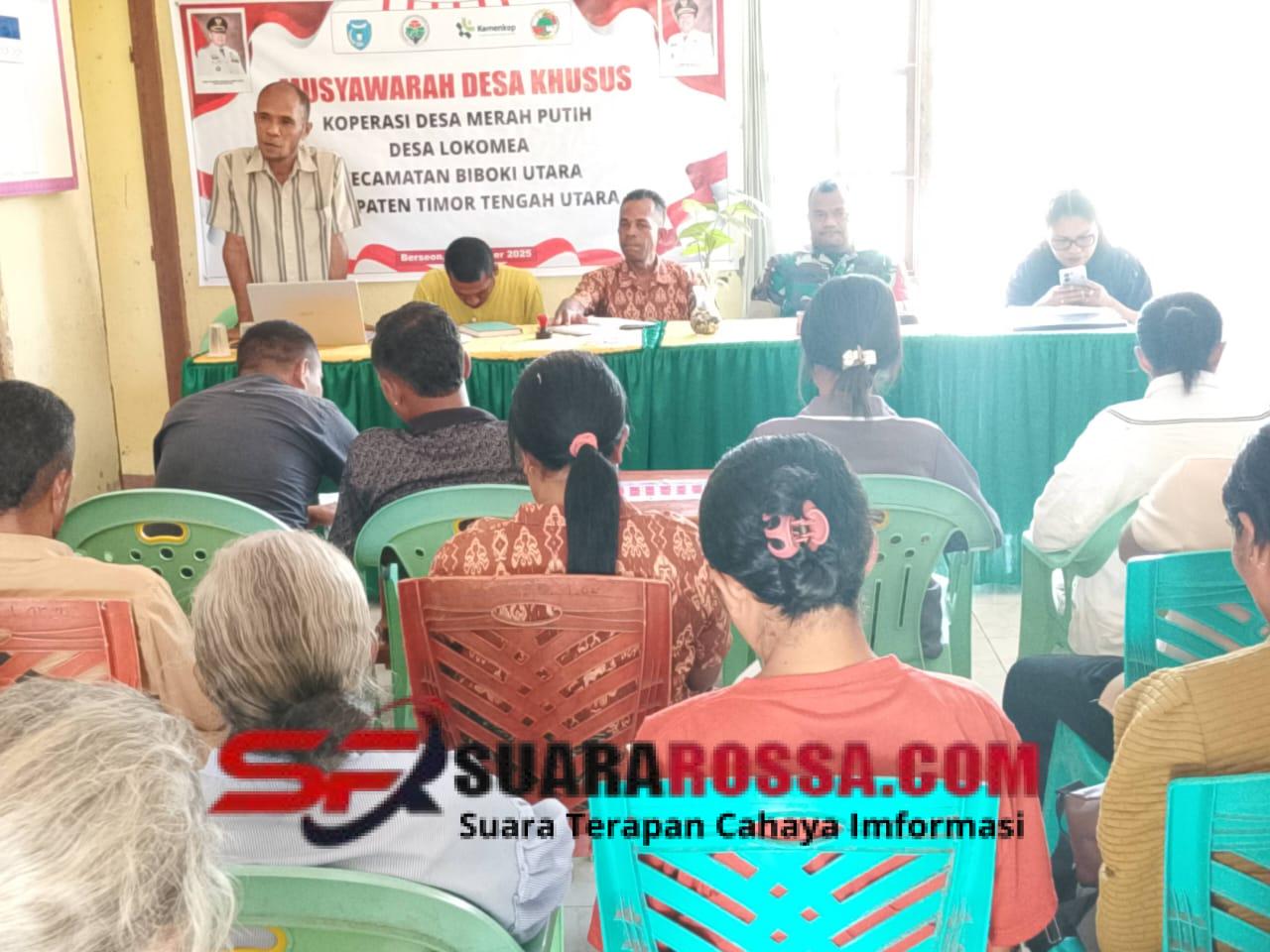 NTT-Kefamenanu, Jumat 31 Oktober 2025, Babinsa Koramil 1618-05/Biut, Sertu Arnoldus Yansen, menghadiri kegiatan Rapat Musyawarah Desa Khusus (Musdesus) Koperasi Merah Putih yang berlangsung di kantor Desa Lokomea, Kecamatan Biboki Utara, Kabupaten Timor Tengah Utara (TTU).