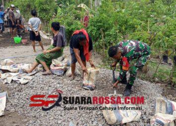 NTT – SIKKA – Dalam upaya mendukung pembangunan infrastruktur desa dan mempererat kemanunggalan TNI dengan rakyat, Babinsa Koramil 1603-01/Alok Kodim 1603/Sikka Pratu Yurdit Banu bersama warga mas...