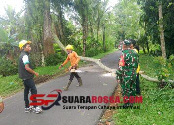 Bangli – Babinsa Desa Selat, Sertu I Nengah Yadnya dari Koramil 1626-02/Susut, bersama Bhabinkamtibmas Desa Selat, Aipda Waya Yudiana Saputra, melaksanakan kegiatan pengamanan dan evakuasi pohon Alb...