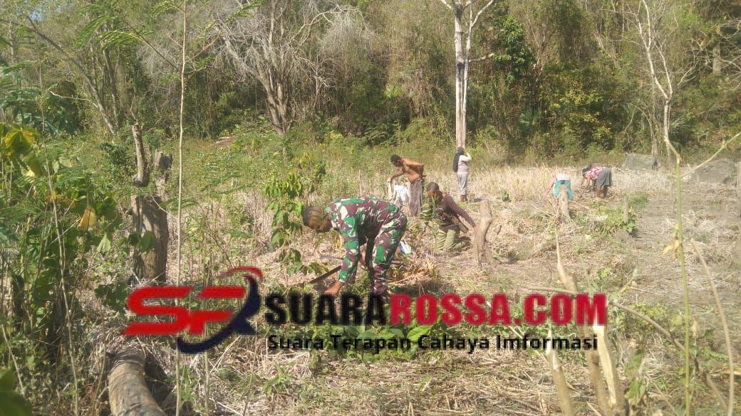 ALOR — Pantar,—Pada hari Sabtu, 1 November 2025 pukul 08.00 Wita, Babinsa Desa Bandar, Kecamatan Pantar, Kabupaten Alor, Kopda Kristianto Serang melaksanakan kegiatan pemantauan wilayah sekaligus membantu masyarakat membersihkan lahan kebun milik Bapak Balsasar Thosang di RT 005/RW 003 Desa Bandar.