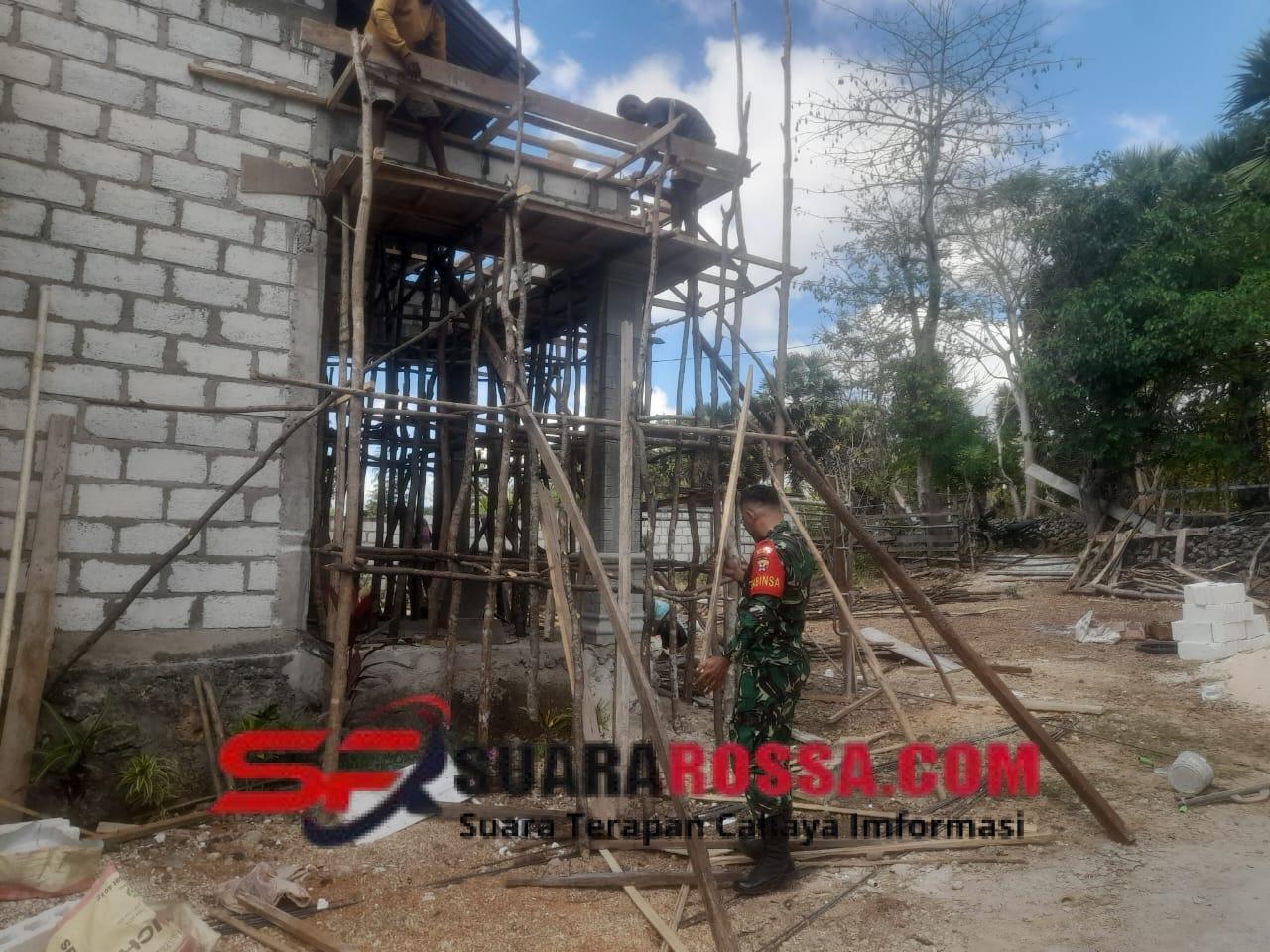 Dalam kegiatan tersebut, Babinsa turut serta membantu salah satu warga binaan, Bapak Jakob Foes, dalam proses pembangunan rumah. Kehadiran Babinsa di tengah masyarakat ini merupakan bentuk nyata kepedulian TNI terhadap kesulitan warga di wilayah binaannya.