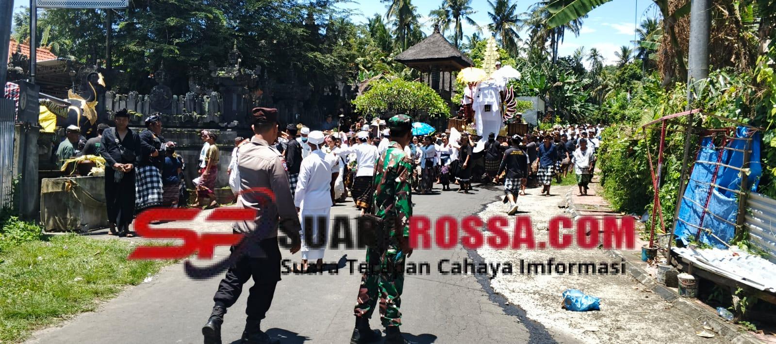 Dalam rangka menjaga dan memastikan seluruh rangkaian upacata pelebon ini berjalan aman, tertib dan lancar, bersinergi bersama Bhabinkamtibmas dan pecalang dirinya turun langsung melaksanakan pengawalan dan pengamanan,”terangnya.
