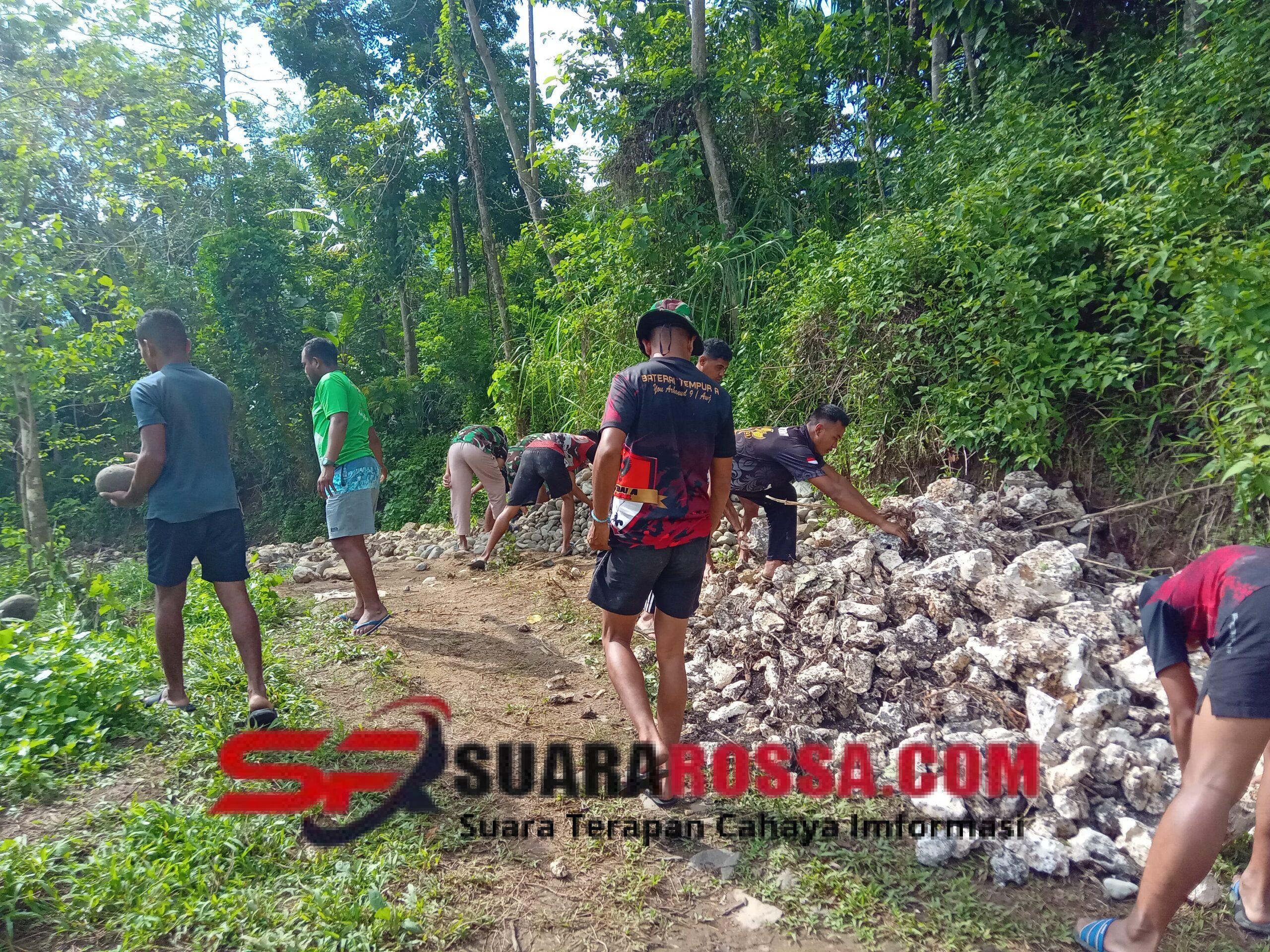 Kegiatan yang berlangsung sejak pagi hari itu disambut antusias oleh masyarakat. Jalan desa yang sebelumnya rusak dan sulit dilalui kini mulai dibenahi agar lebih layak, kuat, dan aman digunakan, terutama saat musim hujan tiba. Gotong royong ini tidak hanya memperbaiki infrastruktur, tetapi juga mempererat tali silaturahmi antara TNI dan warga.