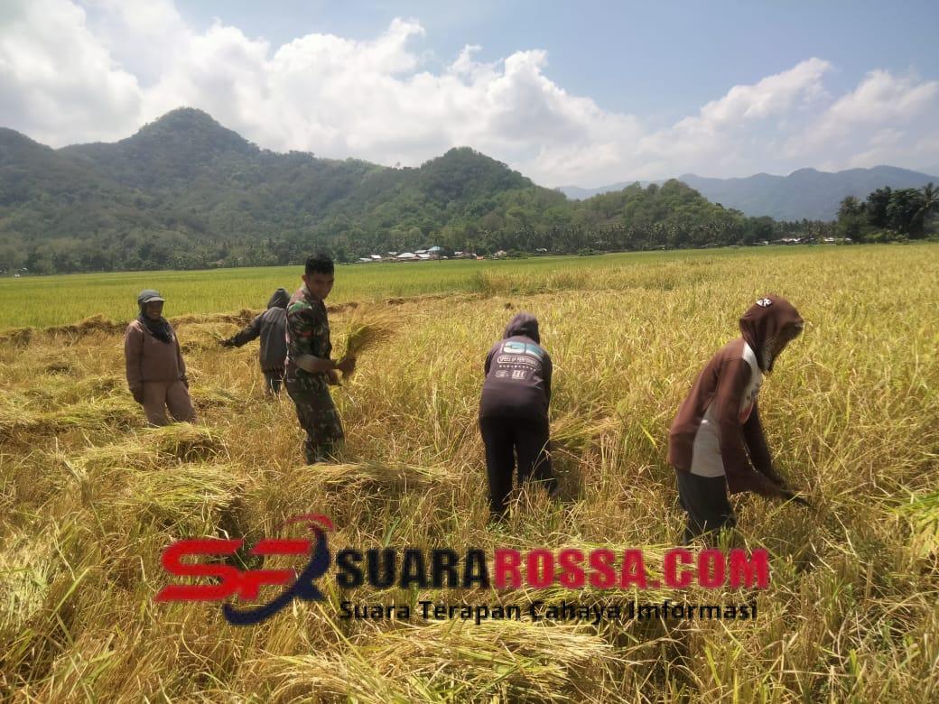Selain panen padi, Babinsa juga melakukan Komunikasi Sosial (Komsos) dengan para petani sekaligus memantau situasi keamanan wilayah agar tetap kondusif dan aman.