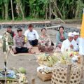 Klungkung,- Babinsa Nyanglan Koramil 1610-02/Banjarangkan Serda Kadek Dwi Awan bersinergi bersama Bhabinkamtibmas dan pecalang melaksanakan pengawalan dan pengamanan upacara melasti yang dirangkai dengan nunas tirta suci di tengah laut Pantai Watu Klotok, Minggu ( 02/11/25 ).