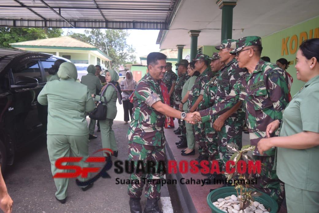 Setibanya di Makodim 1621/Timor Tengah Selatan, rombongan disambut secara adat dengan pengalungan selendang oleh Dandim 1621/TTS Letkol Inf. Gunawan Budhi Prasetyo, S.Sos., didampingi Kasdim 1621/TTS Kapten Inf. Wagino, seluruh perwira Kodim 1621/TTS, serta Asisten I Sekda Kabupaten TTS Deni Nubatonis, S.Sos.