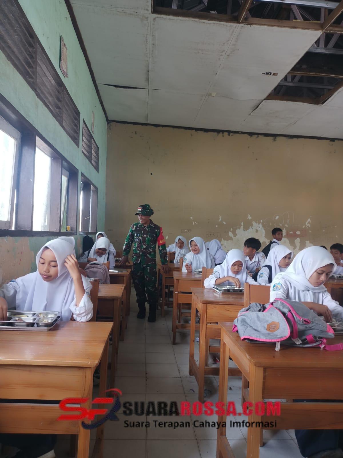 Sumbawa Barat, NTB – Dalam upaya mendukung program pemerintah di bidang ketahanan pangan dan peningkatan gizi anak sekolah, Babinsa Koramil 1628-03/Seteluk, Desa Persiapan Seteluk Rea, Serda Muhamad Hidir, melaksanakan pendampingan kegiatan Program Makan Bergizi Gratis (MBG) di SMP Negeri 1 Seteluk, Senin (03/11/2025).