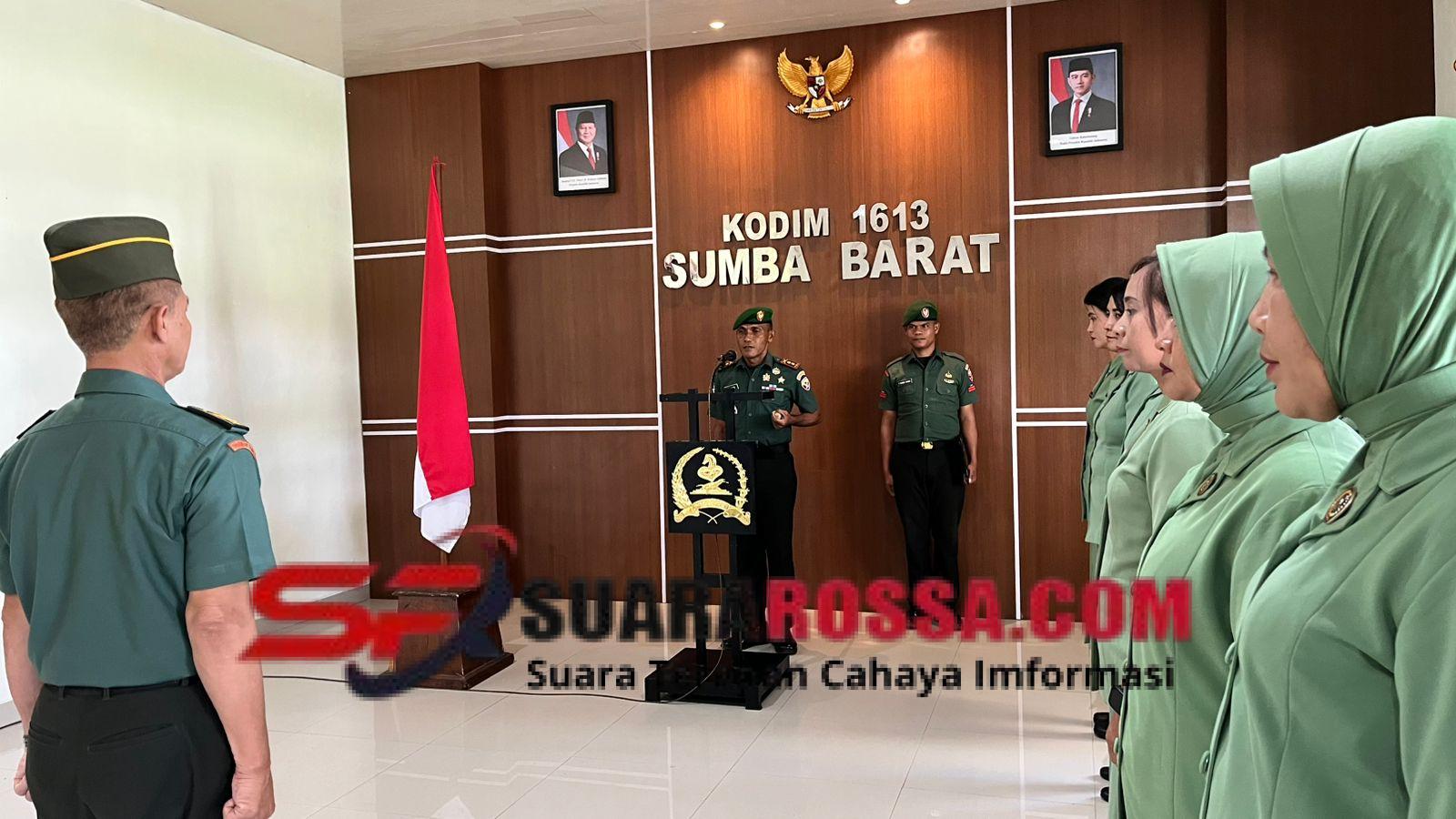 SUMBA BARAT — Komandan Kodim 1613/Sumba Barat Letkol Inf Ignasius Hali Sogen, S.E., M.Han memimpin acara penerimaan anggota baru Mayor Inf Idris sebagai Kepala Staf Kodim (Kasdim) 1613/Sumba Barat serta acara wisuda purnawirawan bagi dua anggota Kodim, Letkol Caj Mulyono dan Mayor Inf Nurhadi.