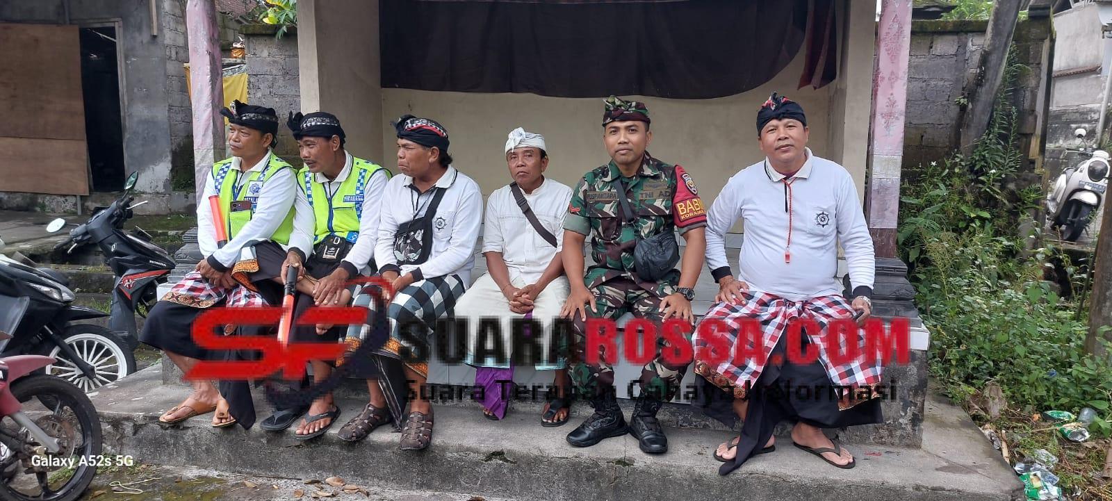 Klungkung, – Pengawalan dan pengamanan demi terwujudnya ketertiban dan kelancaran upacara keagamaan di wilayah binaan, Babinsa Tohpati Kopda Komang Puspantara bersama Bhabinkamtibmas dan pecalang melaksanakan pengamanan bersama, Selasa ( 04/11/25 ).