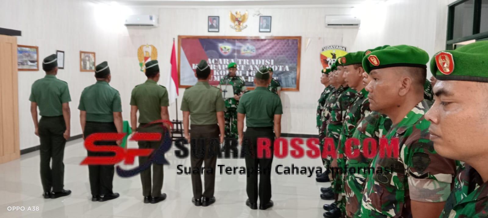 Acara diawali dengan laporan perwira tertua dan penghormatan kepada pimpinan acara, dilanjutkan dengan pelaksanaan Korpraport pelepasan dan penerimaan anggota baru, penandatanganan buku korpraport, serta amanat dari Dandim 1628/Sumbawa Barat.