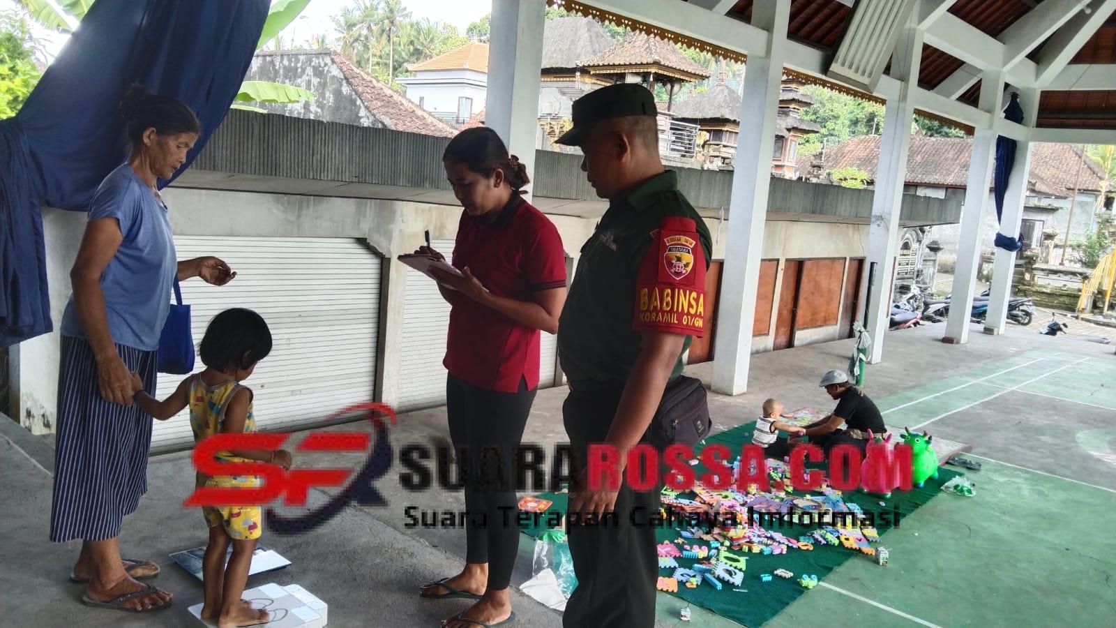 Dalam upaya mendukung program pemerintah di bidang kesehatan masyarakat, Babinsa Desa Petak Kaja Koramil 1616-01/Gianyar, Sertu I Made Mawa, melaksanakan pemantauan kegiatan Posyandu Balita yang berlangsung di Balai Banjar Mantring, Desa Petak Kaja, Kecamatan Gianyar, Kabupaten Gianyar.