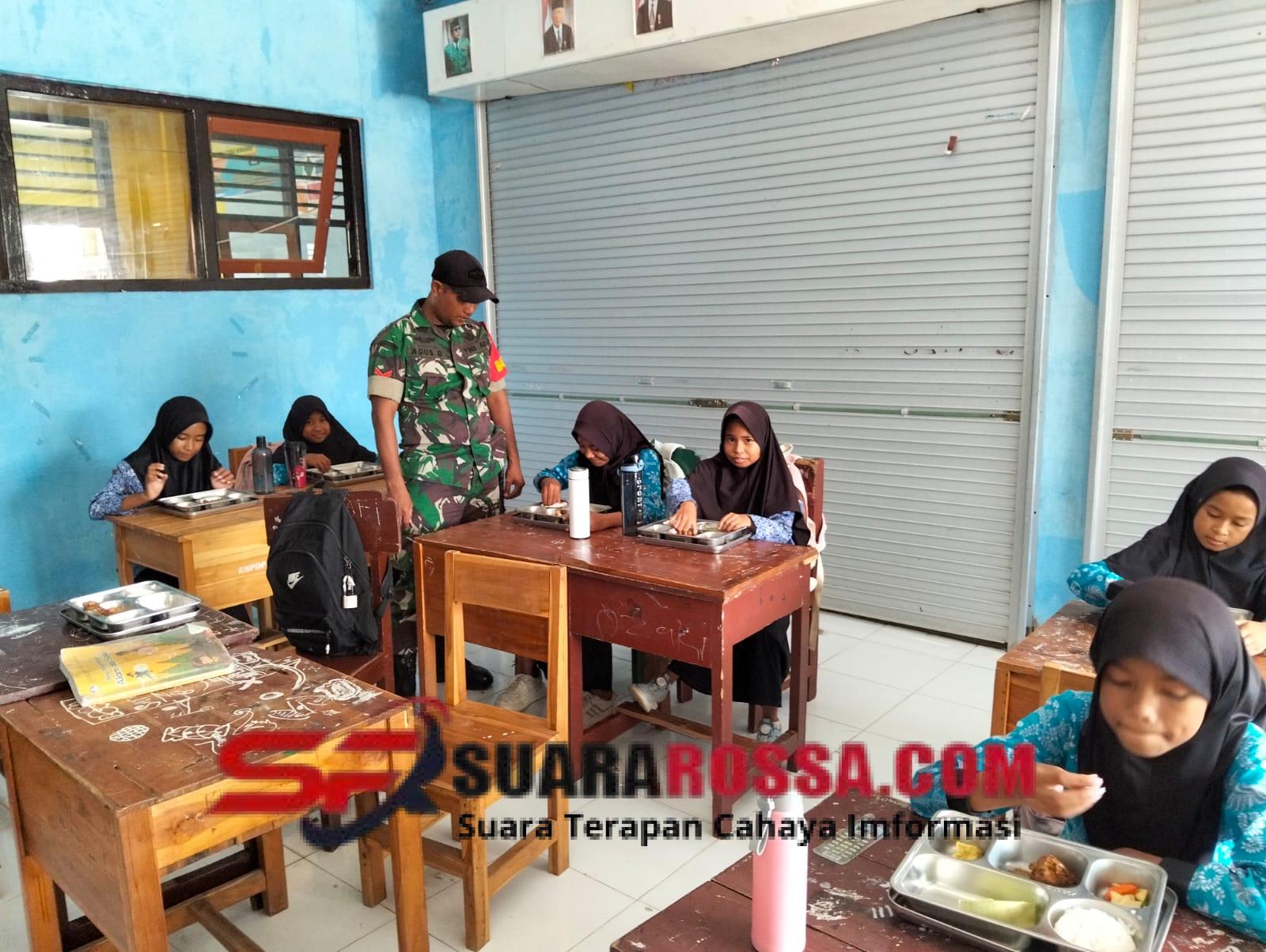 Sumbawa Barat, NTB – Anggota Koramil 1628-05/Jereweh, Babinsa Desa Goa, Koptu Agus Dermawan, melaksanakan pendampingan Program Makan Bergizi Gratis (MBG) di SD Negeri Goa, Desa Goa, Kecamatan Jereweh, Kabupaten Sumbawa Barat, pada Rabu, (05/11/2025), pukul 11.45 Wita.