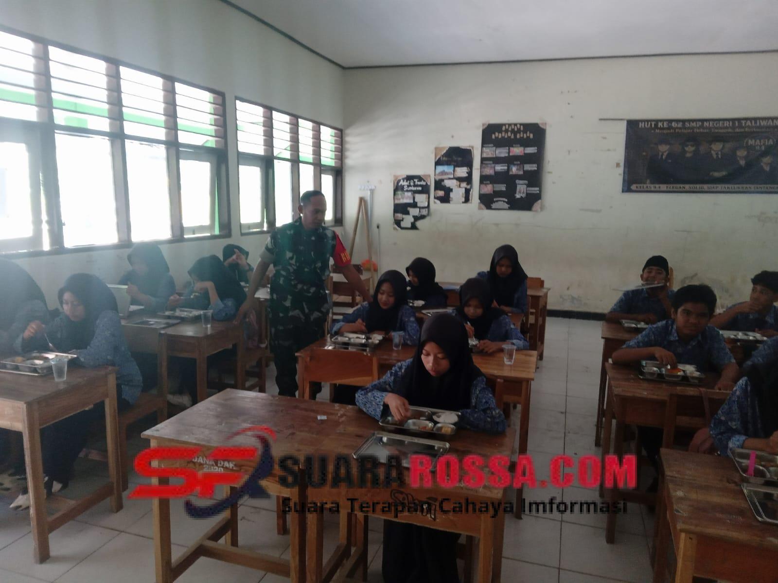 Sumbawa Barat, NTB – Koramil 1628/01 Taliwang melalui Babinsa Kelurahan Kuang, Serka Bustanuddin, melaksanakan kegiatan pendampingan Makan Bergizi Gratis (MBG) di SMPN 1 Taliwang, Kecamatan Taliwang, Kabupaten Sumbawa Barat, Rabu (05/11/2025) pukul 09.30 WITA.