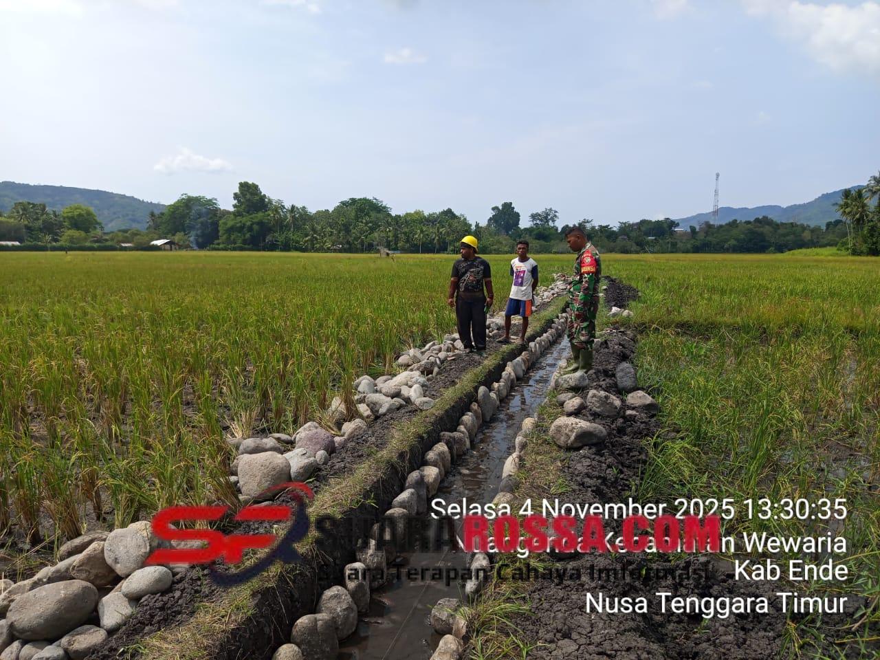 Ende, – Dalam rangka mendukung program ketahanan pangan dan meningkatkan kesejahteraan petani, Babinsa Koramil 1602-03/Detusoko, Kopda Yosef Siga, melaksanakan kegiatan pendampingan dan pengawasan pekerjaan irigasi bersama Kelompok Tani Tunas Harapan 2 di Desa Nuangenda, Kecamatan Wewaria, Kabupaten Ende, pada Selasa (4/11/2025).