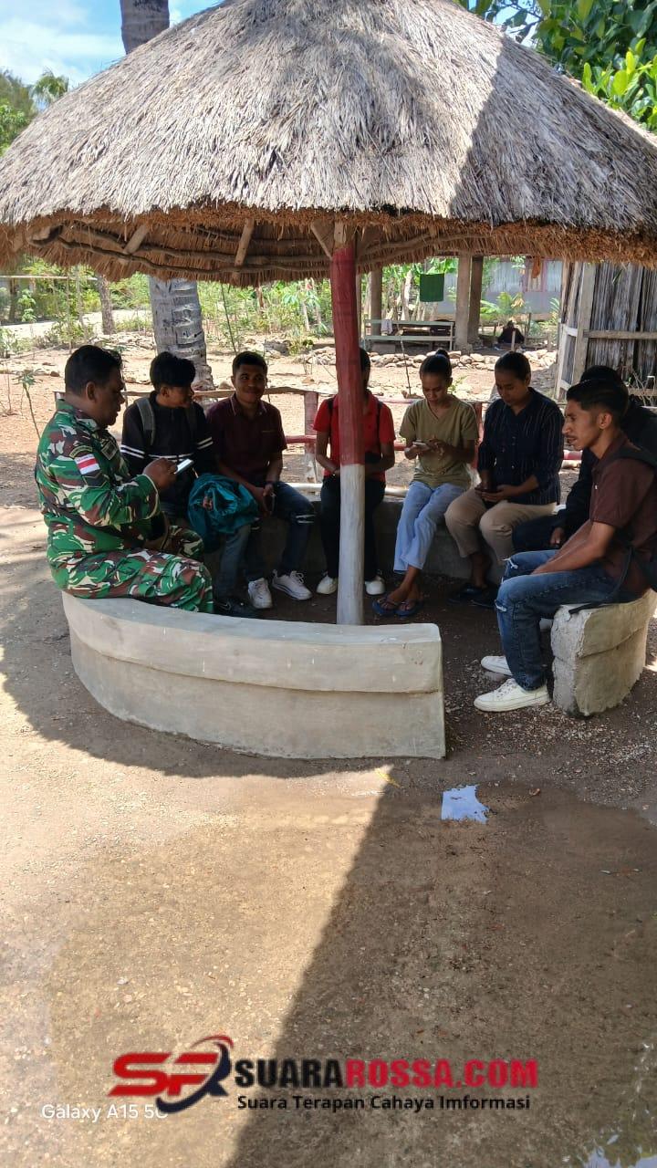 Dalam kegiatan yang penuh tanggungjawab, Babinsa melaksanakan Komunikasi Sosial (Komsos) bersama sejumlah mahasiswa Universitas Timor (Unimor) yang sedang melakukan wawancara dengan Kepala Desa Usapinonot terkait kegiatan penelitian dan tugas kuliah mereka.