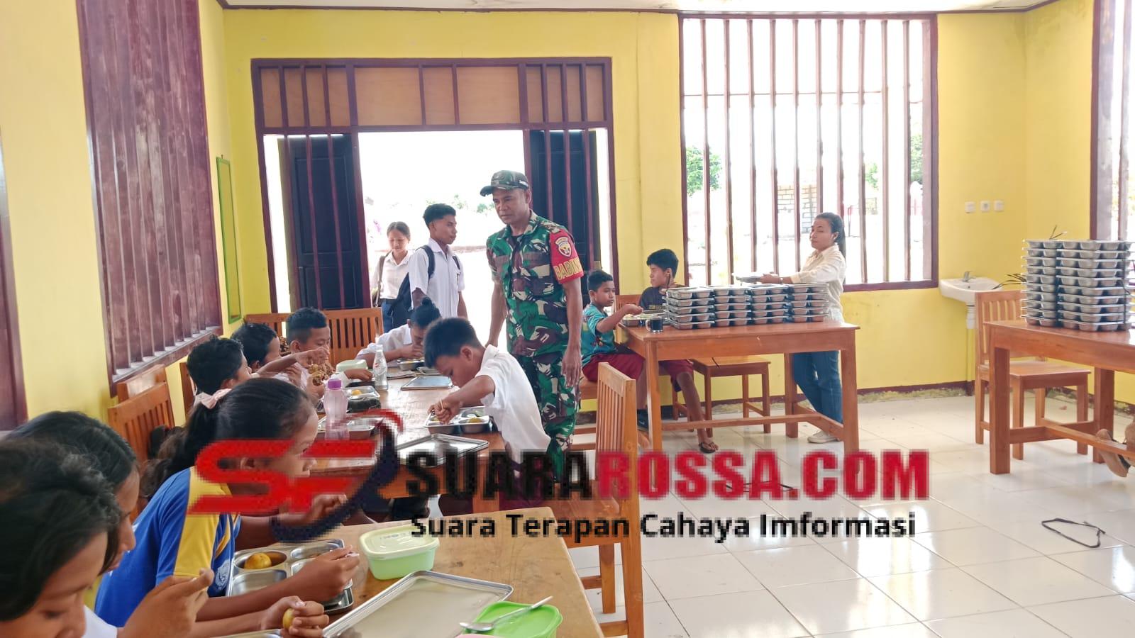 Rote Ndao, 7 November 2025 — Babinsa Koramil 1627-01/Ba’a, Sertu Nelson Sine, melaksanakan pendampingan dan pemantauan langsung kegiatan Program Makanan Bergizi Gratis (MBG) yang digelar di Kompleks Perkantoran Ti’i Langga Permai, Jl. Lekunik, Kelurahan Mokdale, Kecamatan Lobalain, Kabupaten Rote Ndao, pada Jumat (7/11/2025) mulai pukul 07.00 WITA.