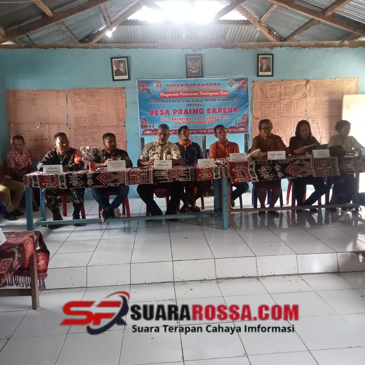 NTT-Sumba Timur. Babinsa Koramil 04/Tabundung, Kodim 1601/Sumba Timur, Sertu M. Jani, menghadiri kegiatan Musyawarah Perencanaan Pembangunan Desa (Musrembangdes) yang digelar di Kantor Desa Praing Kareha, Kecamatan Tabundung, Kabupaten Sumba Timur.Sabtu (08/11/2025).