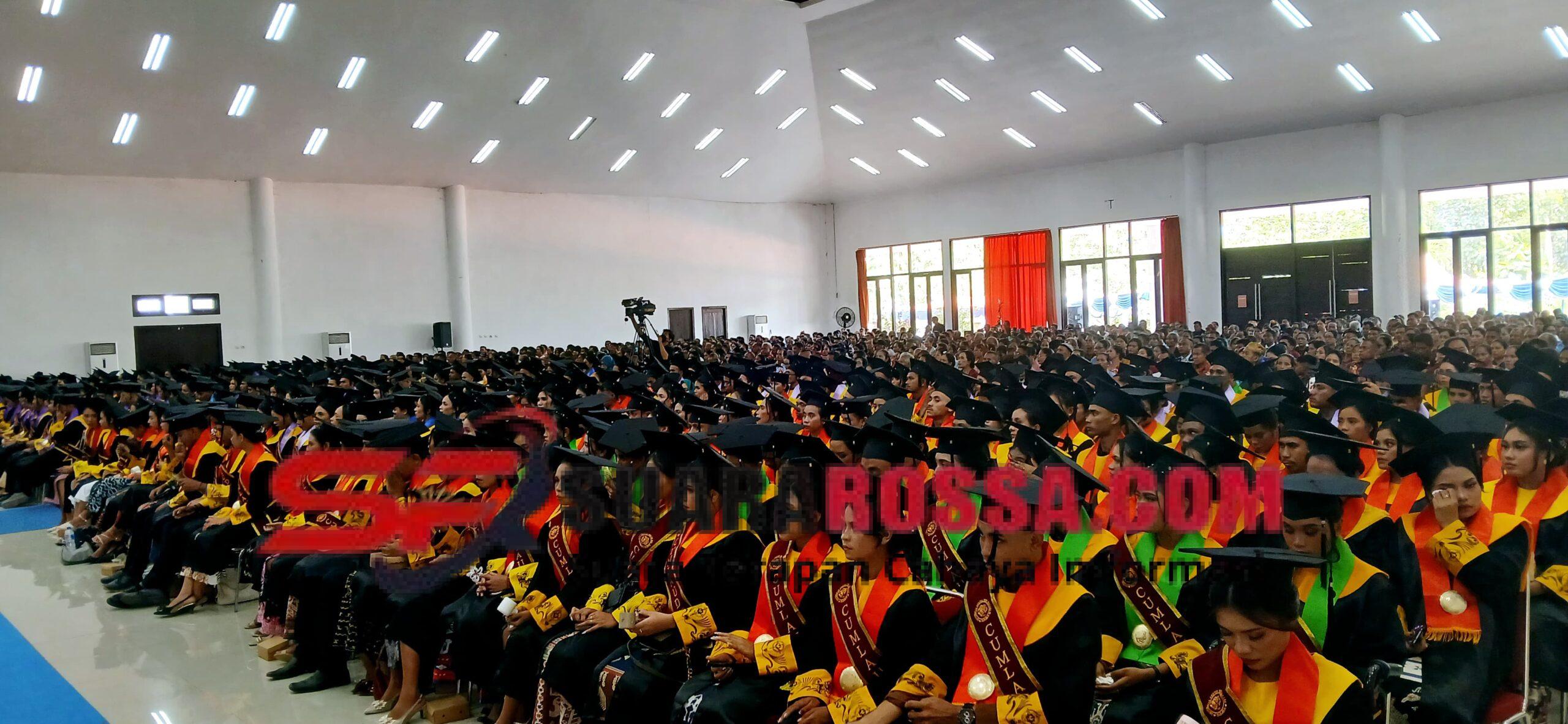 Acara wisuda berlangsung dengan khidmat dan penuh makna, ditandai dengan prosesi pengukuhan para wisudawan oleh Rektor Unkriswina Sumba.