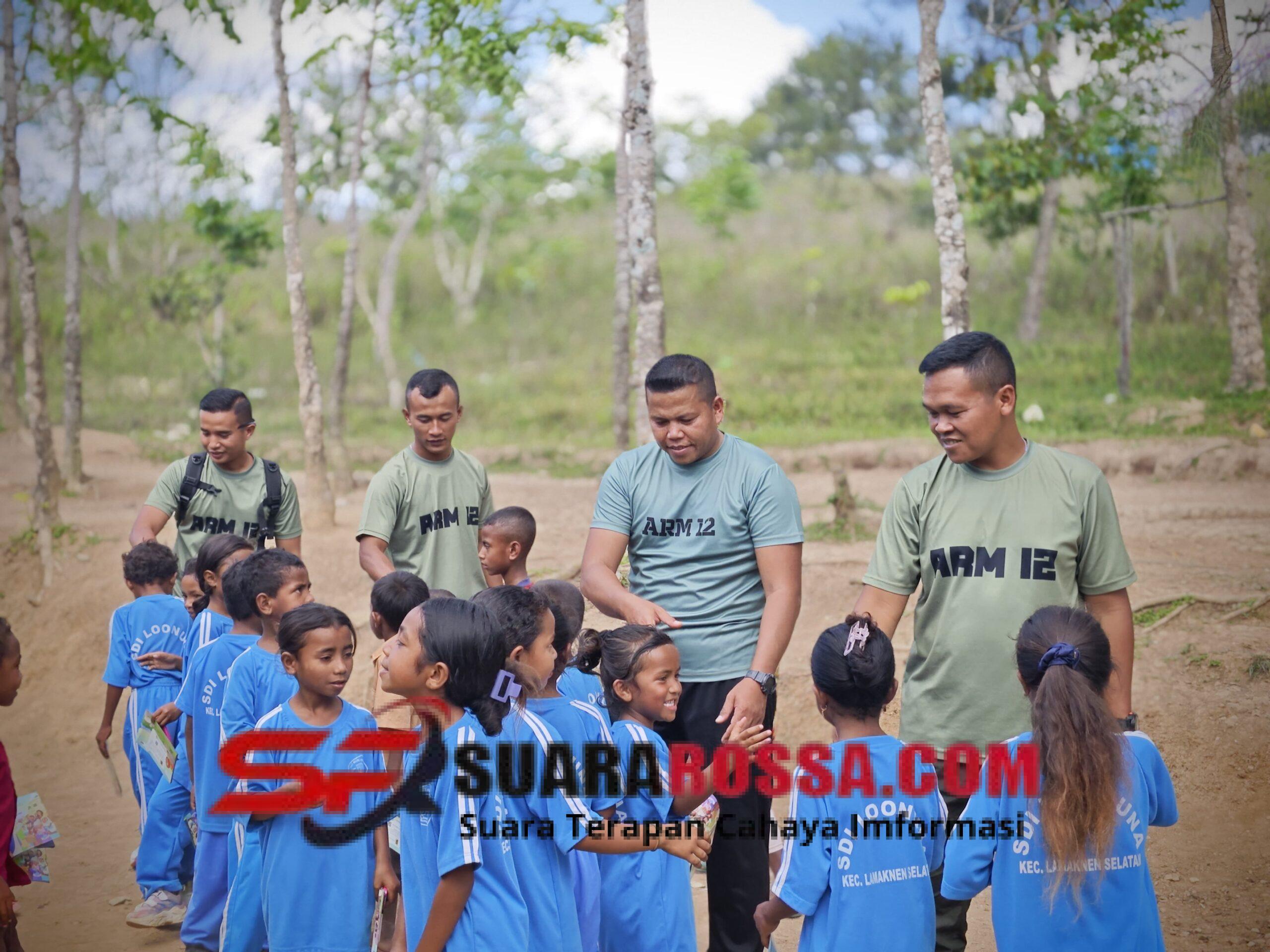 Belu, Nusa Tenggara Timur — Prajurit Pos Fohuk Satgas Pengamanan Perbatasan RI–RDTL Yonarmed 12 Kostrad melaksanakan kegiatan olahraga pagi bersama siswa SD Loonuna, Kecamatan Lamaknen Selatan. Kegiatan ini diawali dengan pemanasan bersama, dilanjutkan jalan sehat mengelilingi lingkungan sekolah, dan diakhiri dengan pembagian snack gratis kepada seluruh Siswa. Sabtu (08/11/2025).