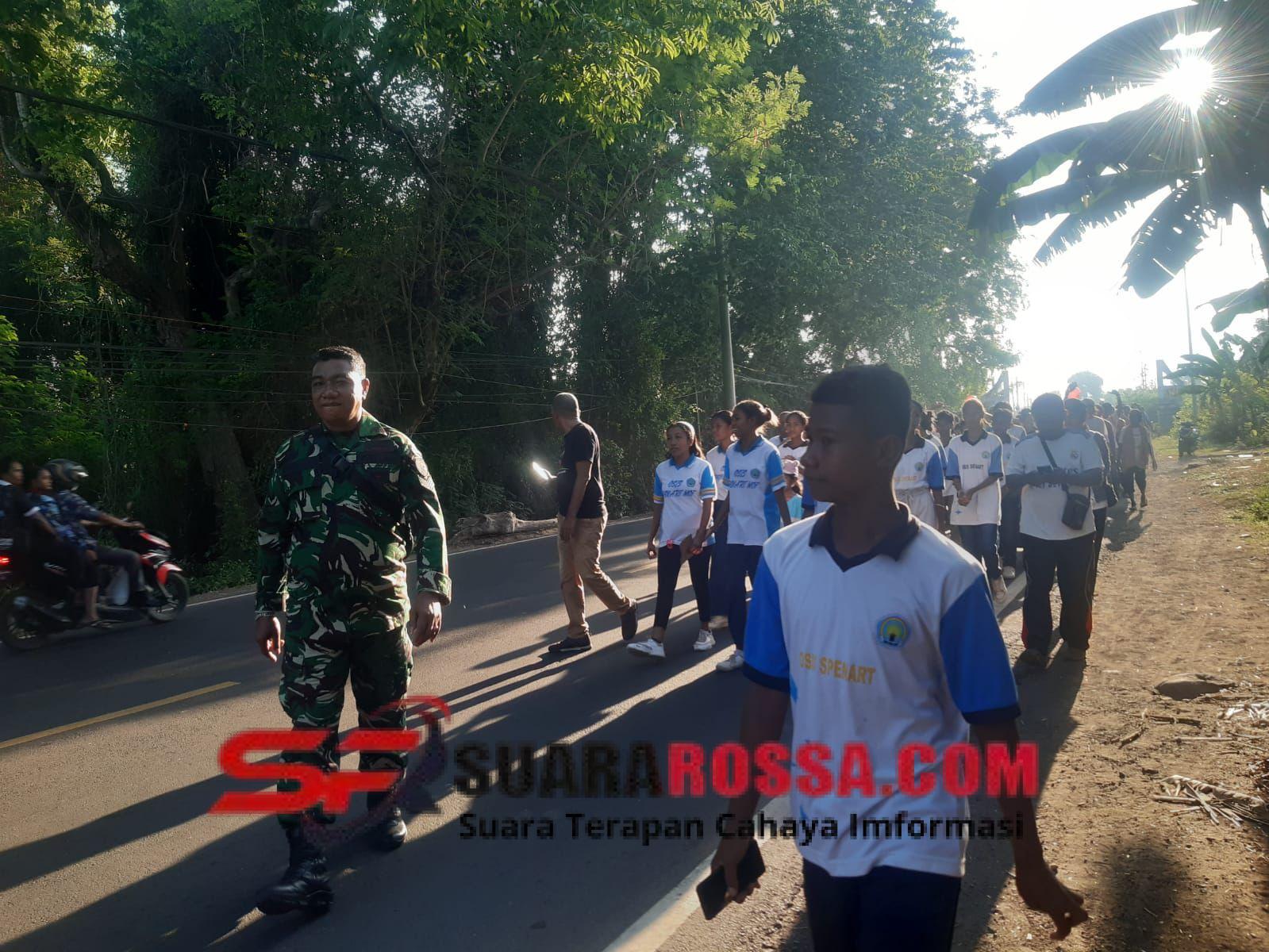 NTT SIKKA – Dalam rangka menjaga keamanan dan kelancaran kegiatan masyarakat, Babinsa Koramil 1603-04/Kewapante Kodim 1603/Sikka, Serka Muhammad Nur, melaksanakan pengamanan kegiatan jalan sehat dalam rangka HUT ke-57 Desa Watuliwung,