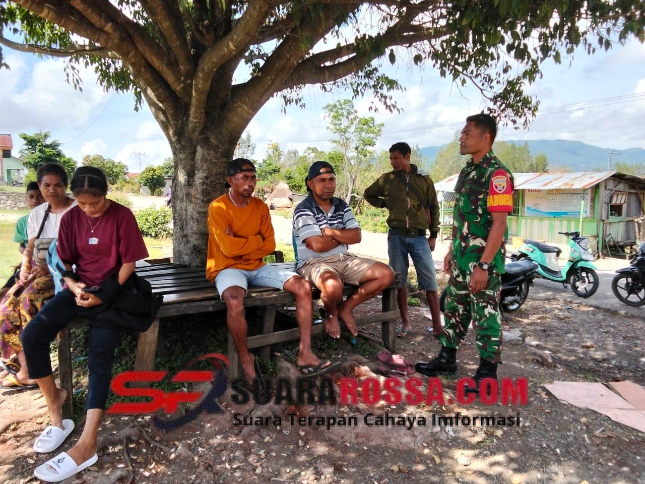 Kegiatan tersebut berlangsung penuh keakraban, di mana Babinsa berbaur langsung dengan Masyarakat untuk mendengarkan berbagai aspirasi, keluhan, serta perkembangan situasi di wilayah binaan. Dalam suasana santai, Kopda Maximus Busoin berdialog dengan Warga mengenai kondisi sosial dan keamanan Desa, sekaligus memberikan masukan serta solusi terhadap berbagai permasalahan yang dihadapi Masyarakat.
