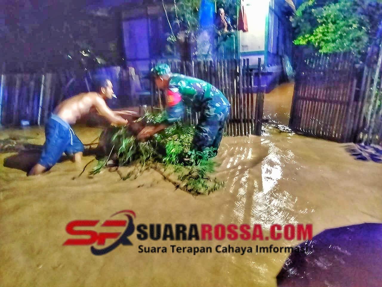 Serda Nurdin, Babinsa Desa Belo dari Koramil 1608-04/Woha, langsung bergerak cepat dengan datang ke lokasi banjir sekitar pukul 02.00 Wita. Ia segera membantu evakuasi warga terutama yang lansia agar pindah ke tempat yang lebih aman saat air mulai naik.