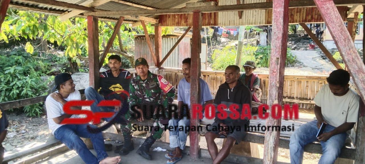 Ende, — Babinsa Koramil 1602-02/Wolowaru, Sertu Arnoldus Seba, melaksanakan kegiatan Komunikasi Sosial (Komsos) dan Pengamanan Wilayah (Pamwil) di Dusun Lelu, Kelurahan Watuneso, Kecamatan Liotimur, Kabupaten Ende, pada Minggu (9/11/2025) pukul 08.30 WITA hingga 09.45 WITA.