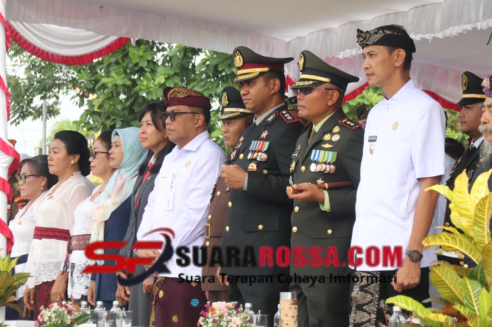 Bertindak selaku inspektur upacara Bupati Klungkung I Made Satria, yang dihadiri Forkopimda termasuk Dandim 1610/Klungkung Letkol Kav Sidik Pramono, S.Sos., M.M. M. Han beserta instansi dan para veteran, para pejabat kecamatan serta anak sekolah serta undangan lainnya yang diikuti kurang lebih 300 orang.