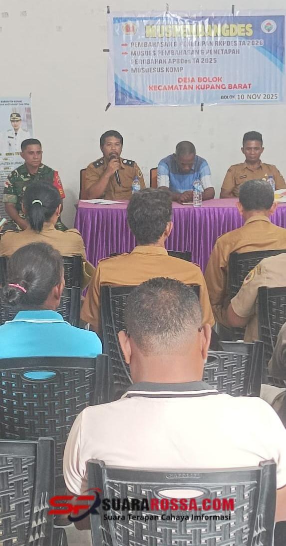 NTT-KUPANG, – Babinsa Desa Bolok Koramil 1604-06/Batakte, Serka Deni Sinlae, menghadiri kegiatan Musyawarah Perencanaan Pembangunan Desa (Musrembangdes) yang digelar di Aula Kantor Desa Bolok, Kecamatan Kupang Barat, Kabupaten Kupang. Kegiatan ini membahas sejumlah agenda penting terkait perencanaan dan evaluasi program pembangunan desa. senin (10/11/2025).