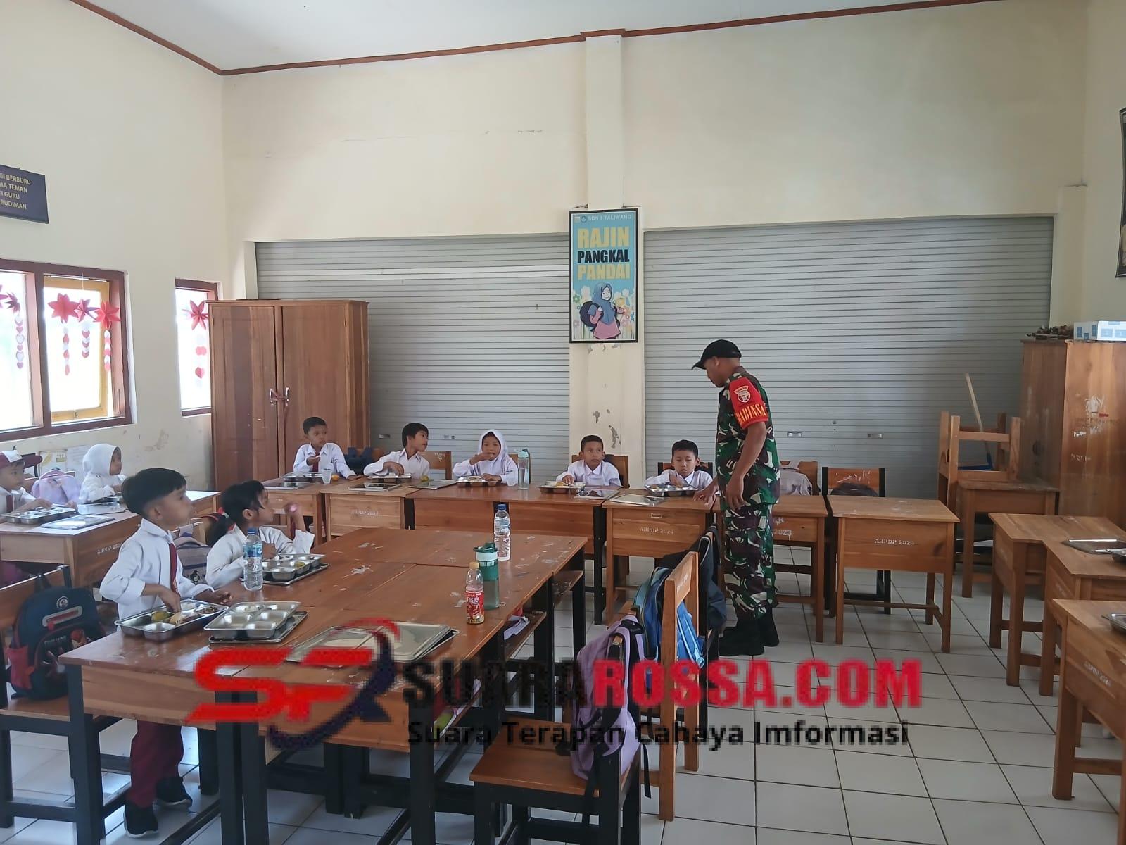 Sumbawa Barat – NTB, Dalam rangka mendukung program pemerintah untuk meningkatkan asupan gizi anak sekolah, Babinsa Kelurahan Kuang, Koramil 1628-01/Taliwang Serka Bustanuddin melaksanakan kegiatan pendampingan Makan Sehat Bergizi di SDN 12 Taliwang, Kecamatan Taliwang, Kabupaten Sumbawa Barat, pada Senin (10/11/2025).