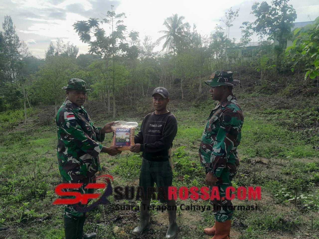 SATGASTER KODIM 1605/BELU, Untuk mendukung program ketahanan pangan nasional dan juga sebagai upaya dalam meningkatkan produktivitas di bidang pertanian, Satgaster Pos Halibete I dan Halibete II memberikan bantuan bibit jagung kepada petani.