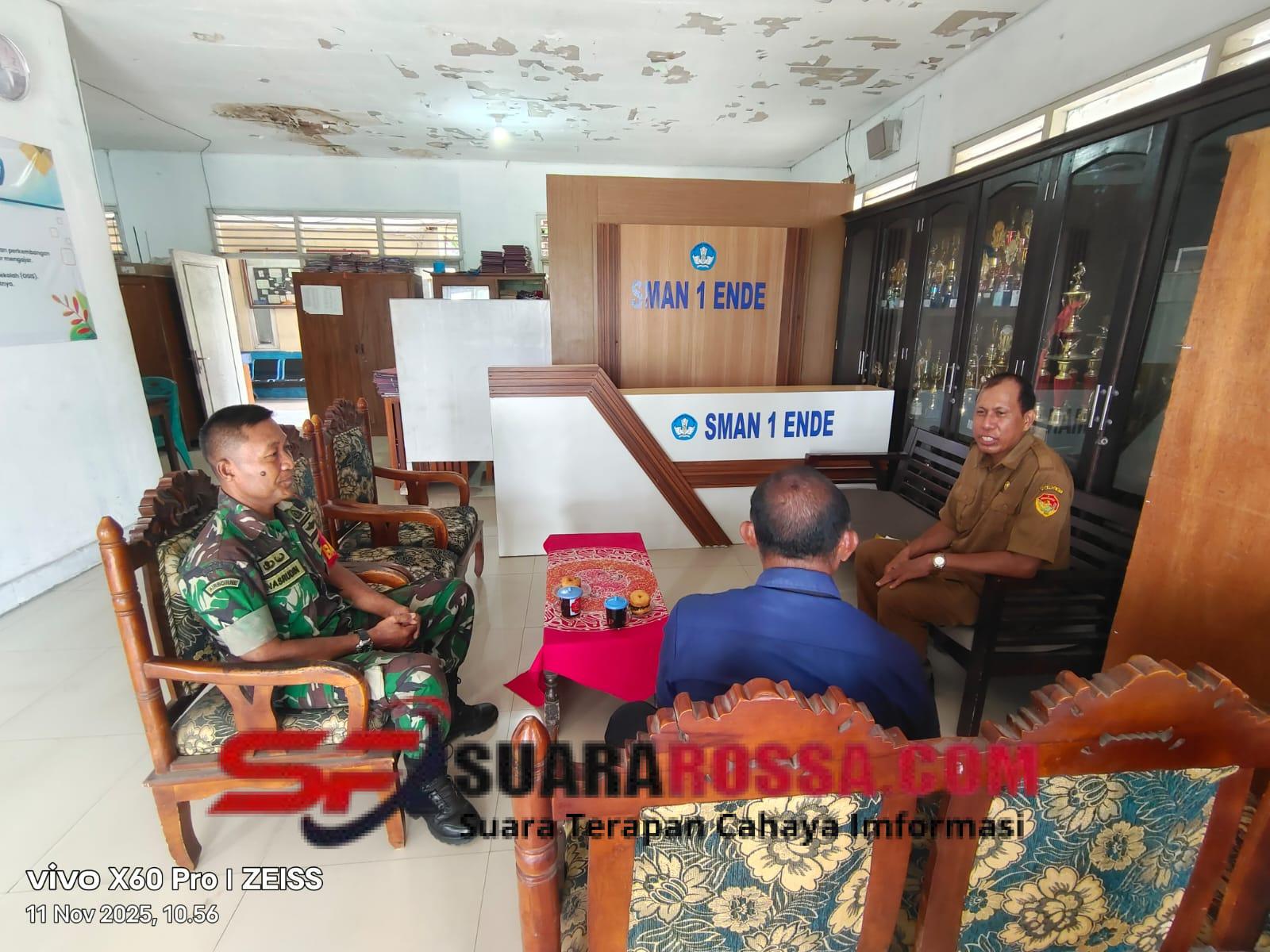 Ende, – Babinsa Koramil 1602-01/Ende, Serma Nasrudin Latif, melaksanakan kegiatan pemantauan wilayah (Pamwil) dan komunikasi sosial (Komsos) di SMAN 1 Ende, yang berlokasi di Jalan Wirajaya, Kelurahan Onekore, Kecamatan Ende Tengah, Kabupaten Ende. Kegiatan berlangsung sejak pukul 10.00 Wita hingga selesai.