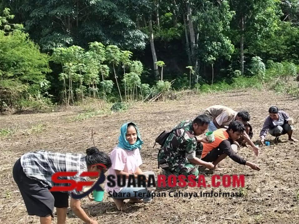 SUMBA BARAT – Babinsa Koramil 02/Walakaka Kodim 1613/Sumba Barat, Serka Ramli, bersama warga melaksanakan kegiatan penanaman padi ladang di Desa Sodana, Kecamatan Lamboya, Kabupaten Sumba Barat, Rabu (12/11/2025).