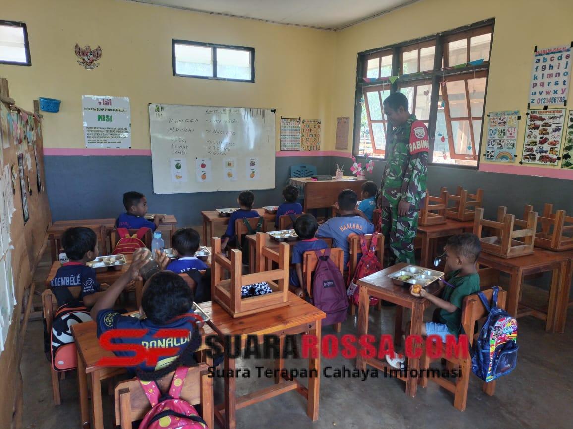 Rote Ndao, Kamis 13 November 2025 — Dalam rangka mendukung program peningkatan gizi anak dan menciptakan generasi sehat serta cerdas, Babinsa Koramil 1627-02/Pantai Baru, Koptu Mesak Foeh, melaksanakan pendampingan kegiatan pemberian makanan sehat bergizi kepada ribuan siswa-siswi di wilayah Kecamatan Pantai Baru, Kabupaten Rote Ndao.