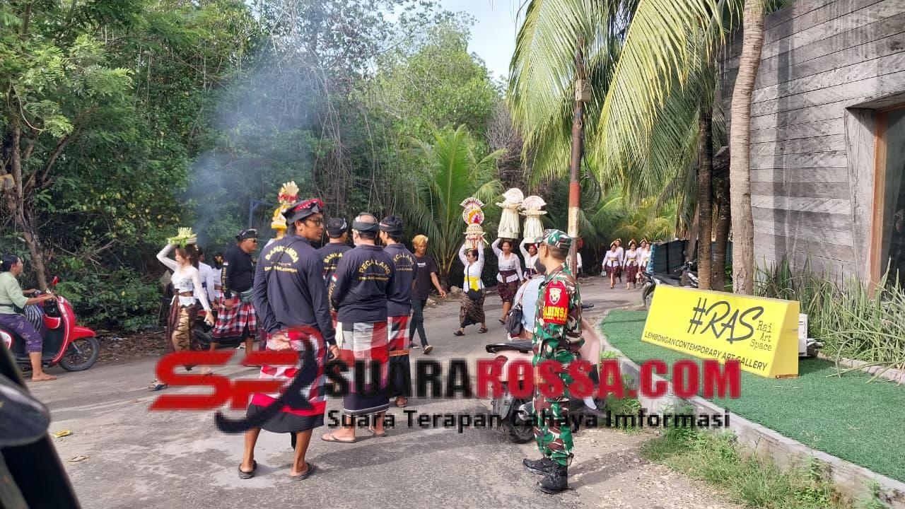 Klungkung,- Aparat TNI Polri di Desa Lembongan, tampak sigap dan kompak turun ke jalan untuk mengatur ketertiban dan kelancaran arus lalu lintas saat digelarnya upacara keagamaan melasti, Jumat ( 14/11/25 ).