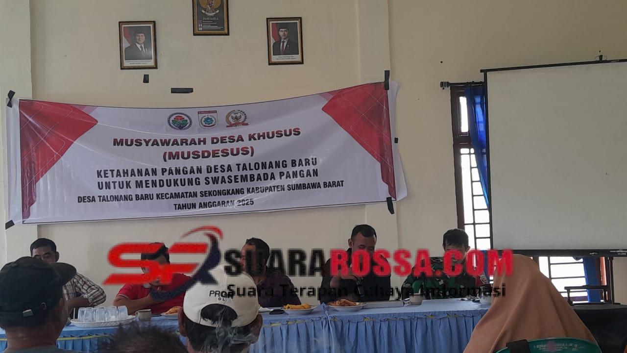 Sumbawa Barat – NTB, Babinsa Desa Talonang Baru, Serda Aden Syahbudin, kembali menunjukkan dedikasi teritorialnya dengan mendampingi pelaksanaan Musyawarah Desa Khusus (MUSDESUS) Ketahanan Pangan yang digelar di Aula Desa Talonang Baru, Kecamatan Sekongkang, Jum’at (14/11/2025).