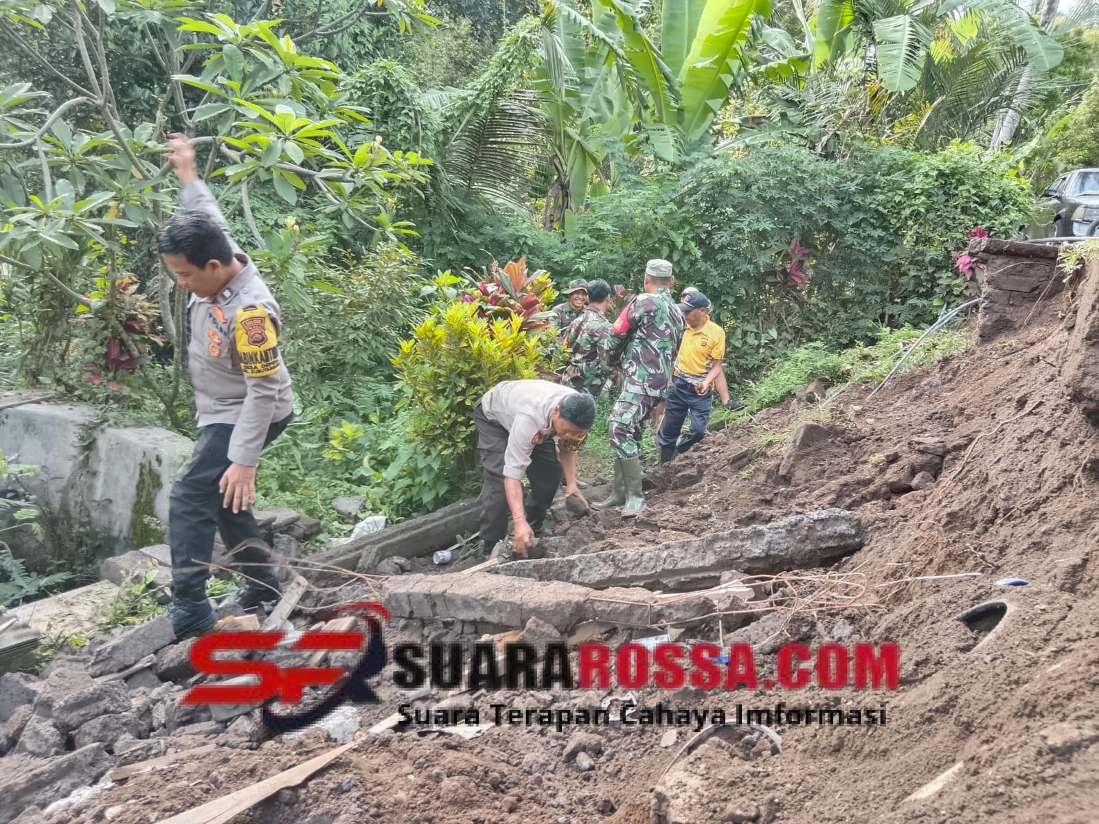 BULELENG : KUBUTAMBAHAN – Curah hujan tinggi yang mengguyur wilayah Kecamatan Kubutambahan Desa Tunjung menyebabkan terjadinya longsor di Banjar Dinas Dauh Margi Desa Tunjung Kabupaten Buleleng. Menyikapi hal tersebut, Babinsa Tunjung, Sertu Made Ardana dari Koramil 1609-02/Kubutambahan, bersama unsur terkait TNI, Polri dan Warga bergerak cepat melaksanakan kegiatan gotong royong membersihkan material longsor rumah warga yang terdampak longsor pada Jumat (14/11) pagi.