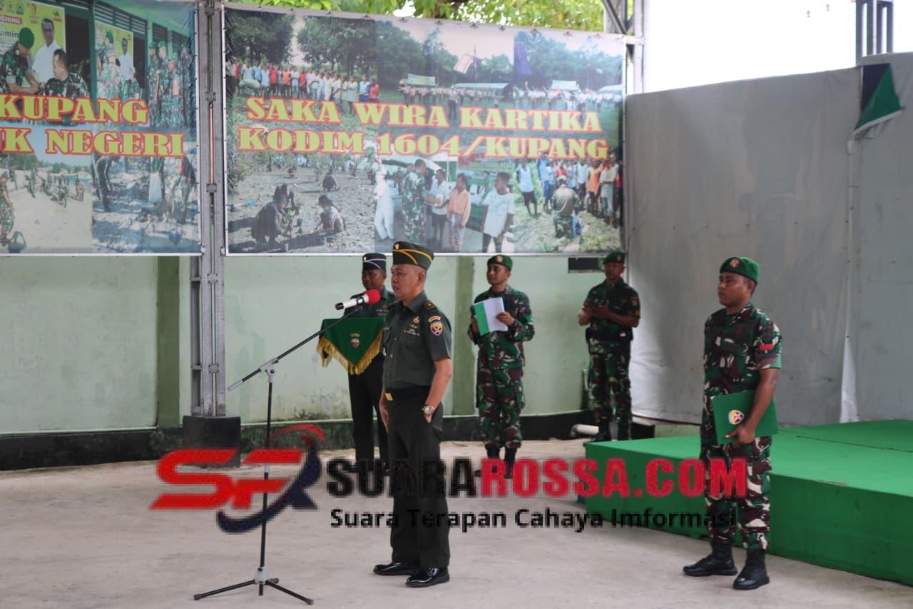 Acara diawali dengan penyusunan peserta yang terdiri dari satu kelompok Pamen Kodim 1604/Kupang serta satu peleton Bintara dan Tamtama. Serka Komang Frans kemudian memberikan laporan resmi pindah satuan, dilanjutkan dengan pemberian piagam penghargaan atas prestasinya yang telah mengharumkan nama Kodim. Suasana penuh khidmat mewarnai jalannya upacara sebagai bentuk penghargaan mendalam dari seluruh anggota satuan.