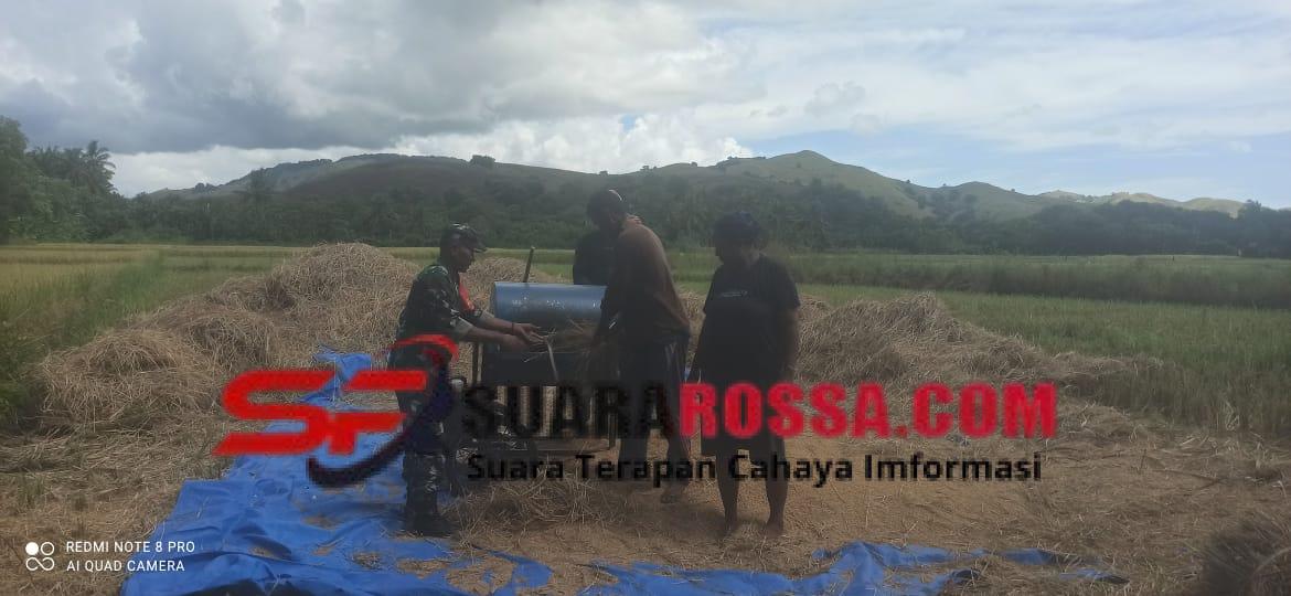 Babinsa, didampingi PPL Desa Tou Timur, Yohanes Wangge, bersama anggota kelompok tani melakukan perontokan padi sawah. Selain itu, Babinsa juga memantau situasi keamanan wilayah dan menanyakan perkembangan tanaman padi setelah mendapatkan bantuan mesin pompa air. Kehadiran Babinsa bertujuan untuk memberikan rasa aman, memastikan kegiatan berjalan lancar, serta membantu masyarakat dalam memaksimalkan hasil pertanian.