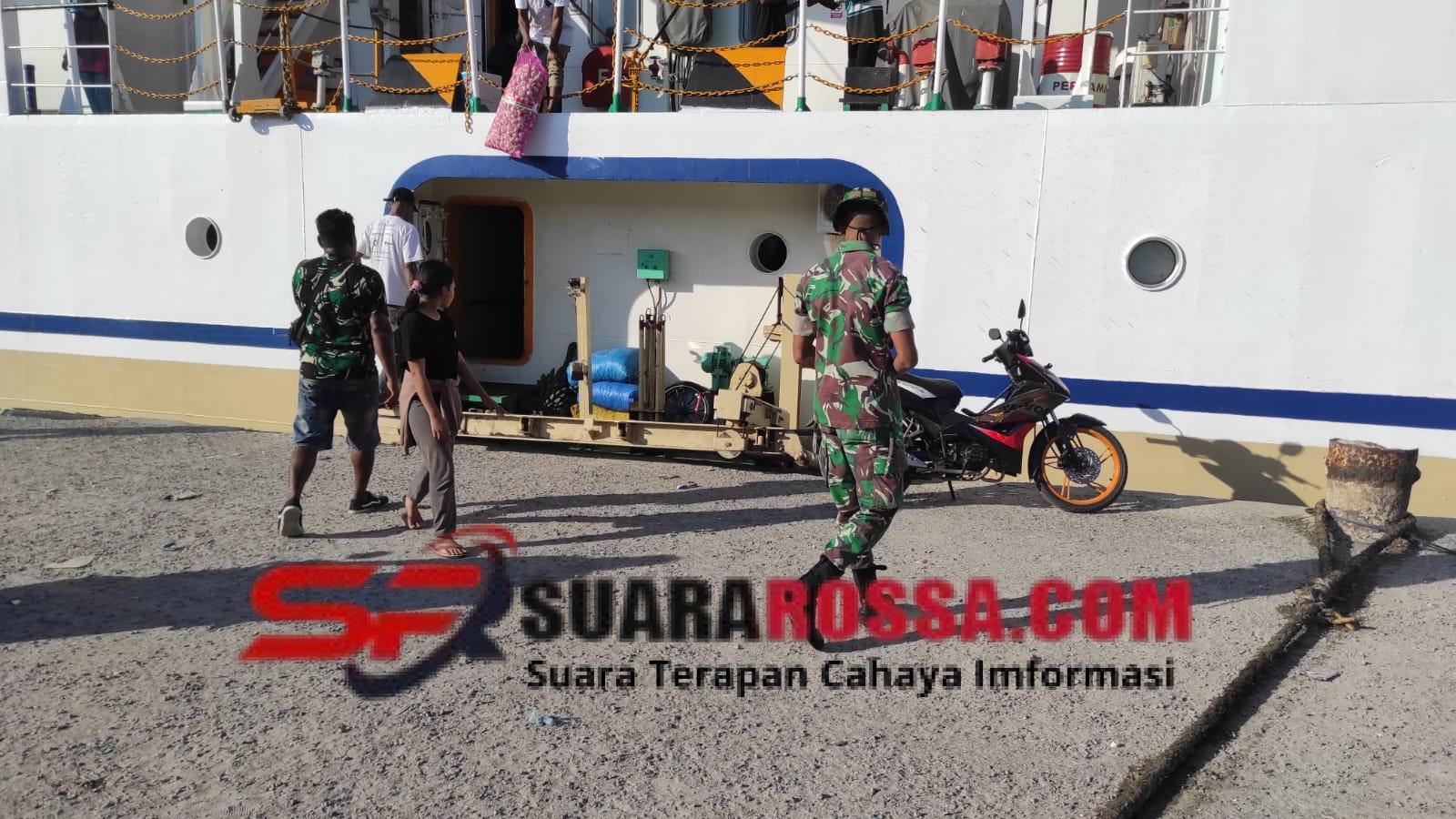 Babinsa Koramil 1624-04/Omesuri Pratu Paskalis Da Costa bersama petugas Syahbandar melaksanakan kegiatan pengamanan dan pemantauan intensif di Pelabuhan Balauring guna memastikan situasi tetap aman dan terkendali saat KM Sabuk Nusantara 101 bersandar. Minggu (16/11/2025).