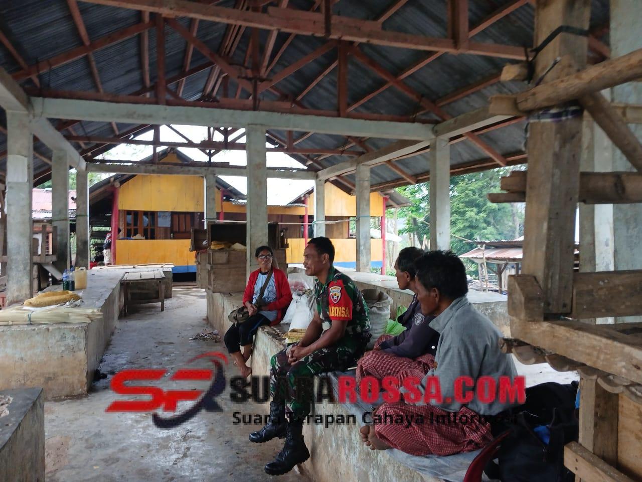 NTT-Sumba Timur.Babinsa Koramil 02/Rindi Umalulu, Kodim 1601/Sumba Timur, Sertu Amos Luta melaksanakan kegiatan komunikasi sosial (Komsos) bersama warga dan para pedagang di Pasar Tradisional Katikuwai, Kecamatan Matawai Lapawu, Kabupaten Sumba Timur, Minggu (16/11/2025).